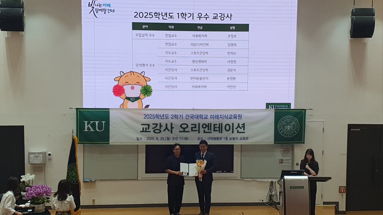 2025년 8월 25일 월요일, 건국대학교 미래지식교육원 1층 대강당에서 2025학년도 2학기 교강사 오리엔테이션과 우수교강사 시상식이 진행되었다.